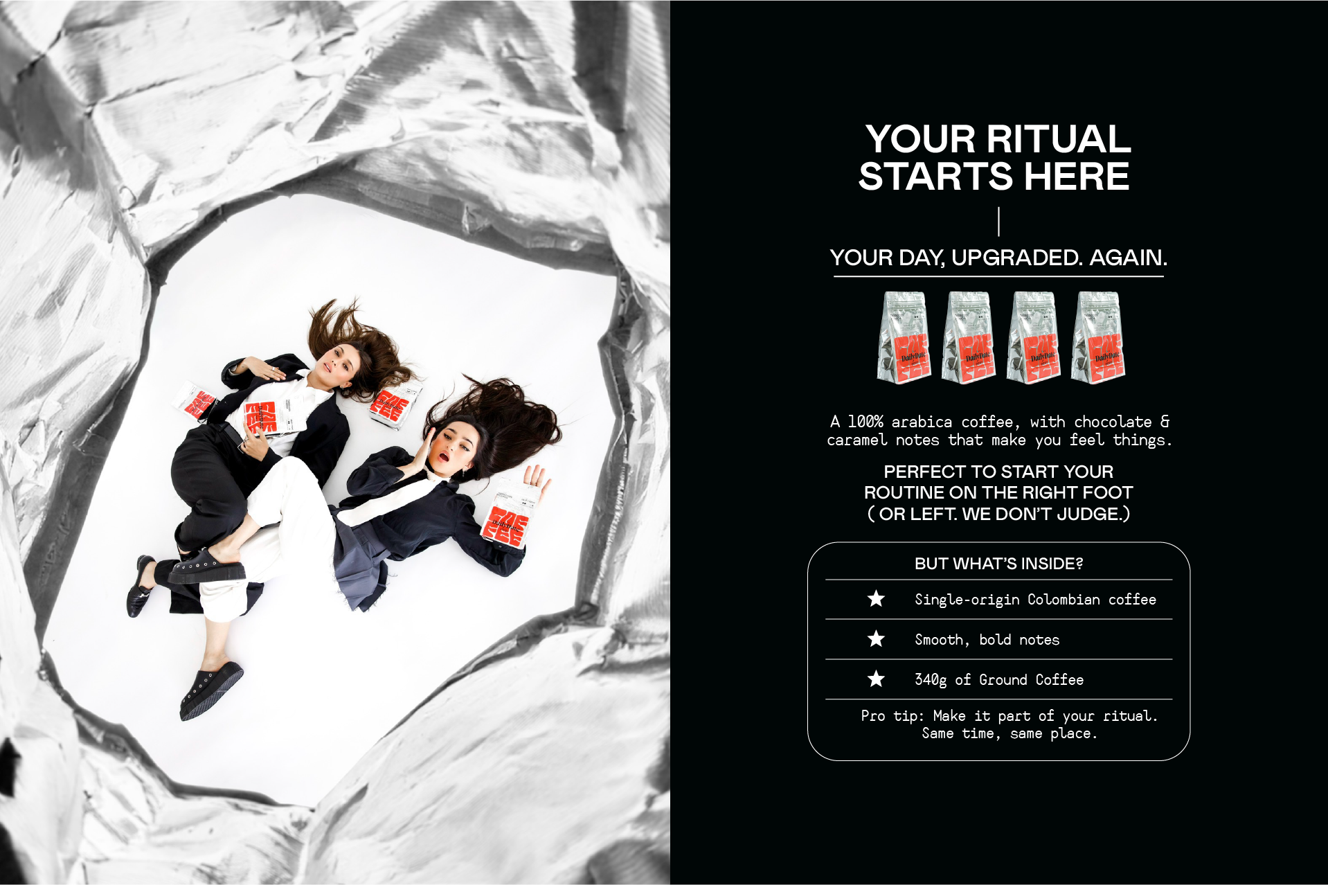 The Daily Date Coffee te invita a una cita a ciegas con un café delicioso y cautivador. Con notas de chocolate y caramelo, este café balanceado y profundo te conquistará desde el primer sorbo. Elaborado con café 100% Arábigo, producido en el eje cafetero colombiano, A altitudes arriba de 1,640 metros sobre el nivel del mar.